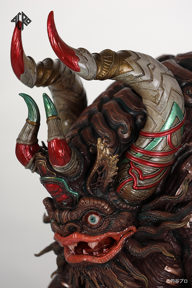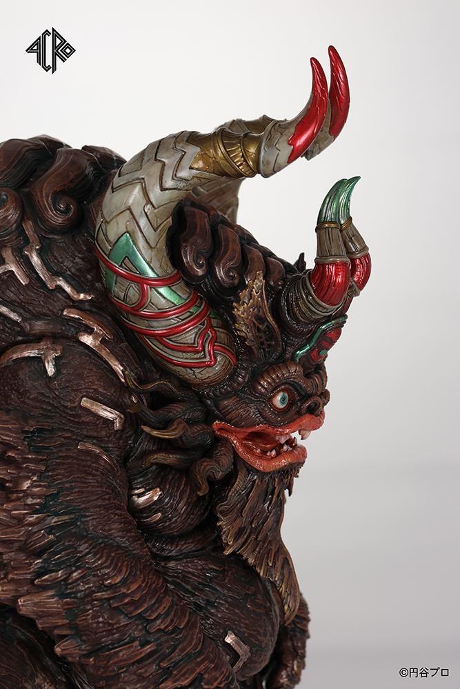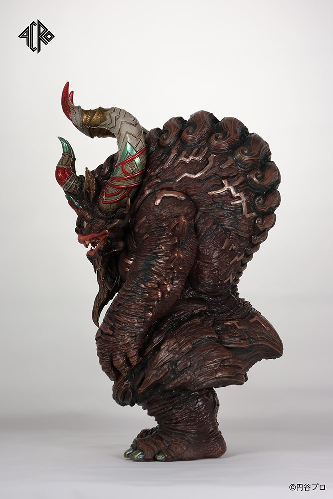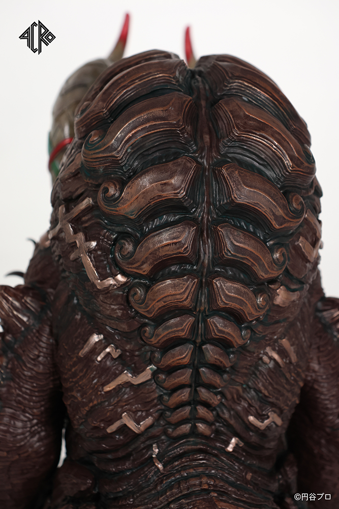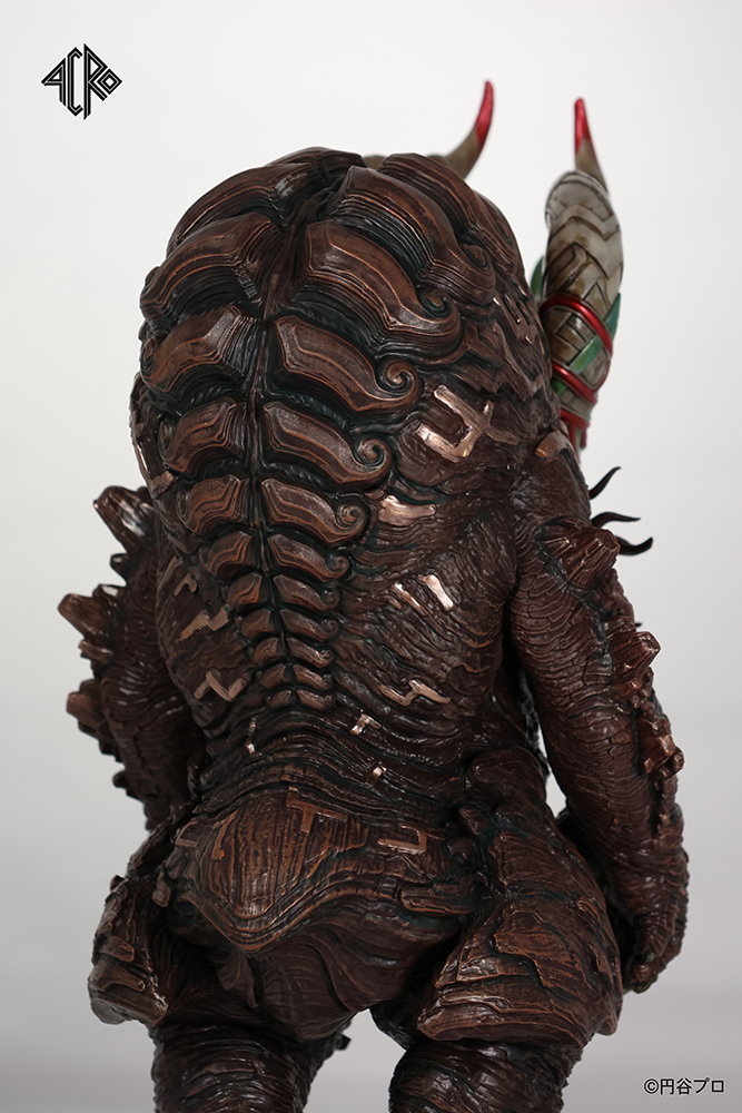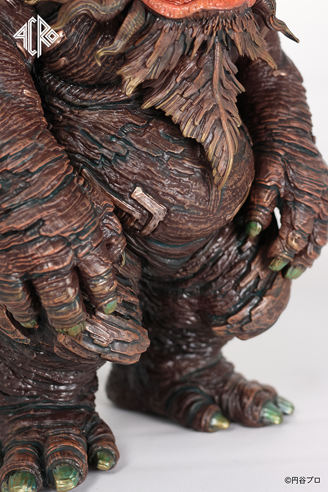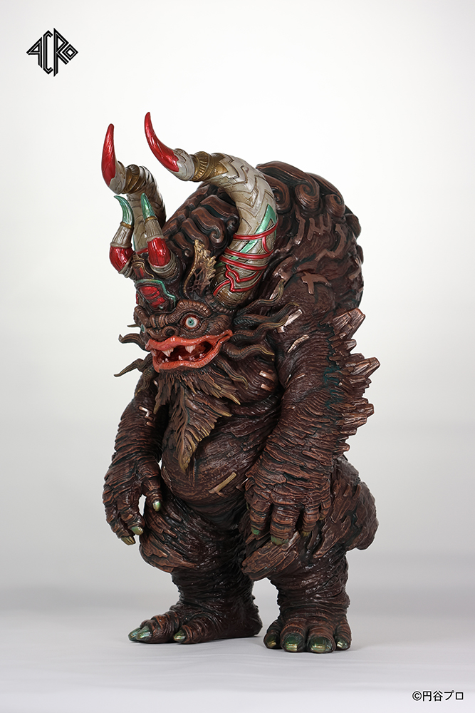 | 商品詳細 | 「KRS×TAKEYA」・・・ACRO社が展開するKRS(Kaiju Remix Series)企画に竹谷隆之氏が参戦。竹谷氏の造形デザインを製品化する企画。 第1弾のウインダムに続き、第2弾はカプセル怪獣『ミクラス』 竹谷氏の思いの込められたRemixデザインを、サガタキック氏の造形によりデザインの魅力を細部まで再現。 重量感のあるボディと大きなツノに施された装飾、デプッとした肉感と愛嬌ある表情からは着ぐるみ感ではなく生物的な魅力が伝わります。 今回、その『ミクラス』が色替え版のEX versionとして登場。 スカルプターズ・ラボ04に掲載された、竹谷隆之氏による彩色見本を製品化しました。 「“いわゆるミクラス配色”に加え、末端の硬質化してそうな箇所にはメタリックな質感を配し、“強そう感”を足すなど、モールドの魅力を強調する技法を施している」という竹谷氏のコメントにもある通り、愛嬌がありながらも威圧感のある仕上がりとなっております。 ACRO独自のU-VINYL技術(焼き出し金型)にてソフビ金型を製作、ミクラス独特の愛嬌のあるシルエットと隅々まで施された装飾の面構成を細部まで忠実に再現しております。 「KRS×TAKEYAミクラス EX version」ぜひお手元でお楽しみください。 <竹谷隆之氏コメント> ウインダムの隣に並べるならやはりミクラスだろうということでアレンジ作業を始めましたが、もうすでに各社から多数の素晴らしいミクラスの製品が発売されているので、このシリーズの特色であるアレンジの作法というか方向性を、今一度考えてみました。 放送当時に造形された着ぐるみの再現ではなく現実に存在するつもりで、しかし元々の偉大なデザインを尊重しながら「よりそれらしく」を強調する…というのは前回のウインダムと変わりませんが、ミクラスはメカではなく生物的な魅力も強調できますから、力強い肉量!テプっとした憎めないたるみ!重量がかかってるシワ!理屈は通じなさそうだけど愛嬌を感じる表情!個性的なハンチバック感!そしてディテールは宇宙エスニックなパターンをツノや皮膚にはめ込んだり、頁岩のような爪や表皮……などとモウソウしながらザックリとしたラフを描いて、『あとでもっとちゃんと書きます!』と言いながら前回同様結局描かずに……造形担当者様におすがりしてしまいました。 デジタル造形を担当していただいたのはサガタキックさんで、以前彼が作られたギャンゴやドラゴン系の造形物を拝見して素晴らしい完成度と造形センスに魅了されてしまったので、なにとぞ是非に!ということでお願いしましたところご快諾いただき!本当に良かったです!僕も製品を手にするのが楽しみでなりません! セブンの顔はめパネルの写真で泣きそうな顔でウルトラ警備隊になりきってるのは5才になる前の僕です。この頃すでにウインダムやミクラスを好きだったと思うと、この仕事をいただけた有り難さをズッシリ実感します。 竹谷隆之 ![]() <サガタキック氏コメント> ギャンゴ以来、二度目の参加となったKAIJU Remix。 そして何より自分にとっては竹谷隆之さんとのはじめてのお仕事ということで、畏れ多くも貴重な経験をさせていただきました。 ミクラス特有の腕白さと量感、生物とも異国の彫像ともとれる質感、それらを竹谷さんならではの有機的なディテールで纏めたこのシリーズらしさの詰まったアレンジ。 この魅力をお届けできるよう造形&デコマスとも細部までこだわって仕上げております。 ボリューム感もたっぷりで、満足いただける出来栄えになっていると思いますので是非お手に取っていただければありがたいです。 サガタキック |